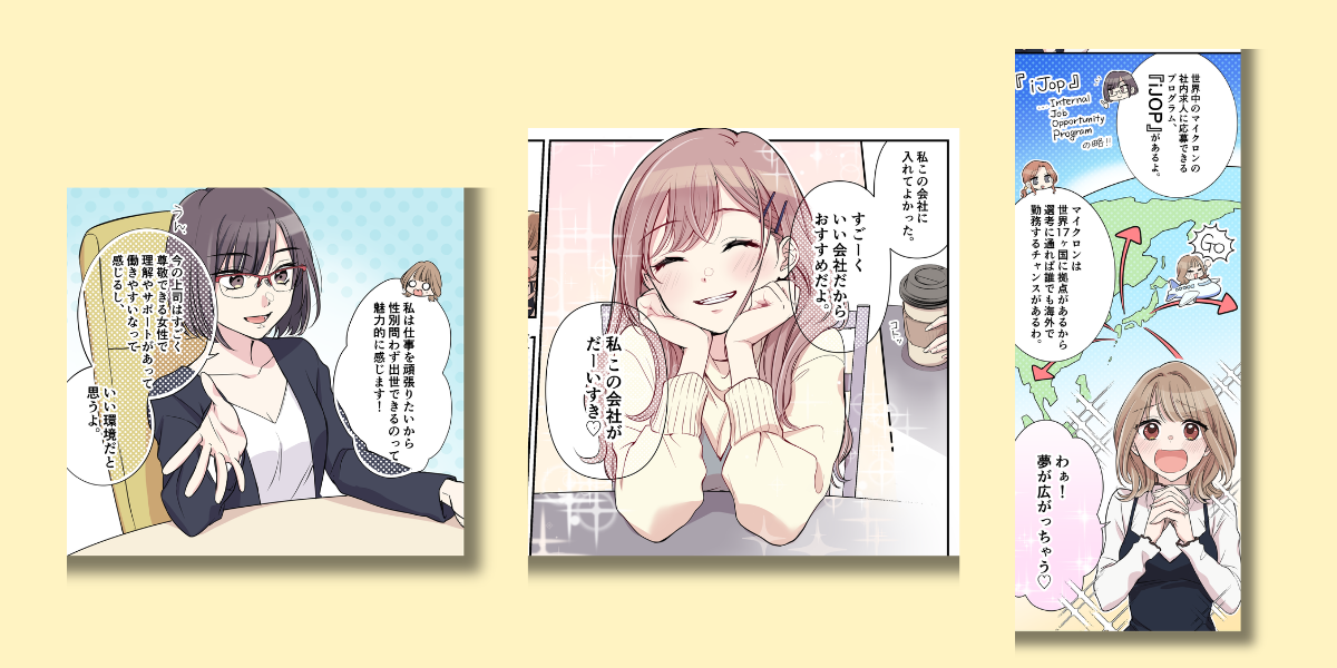 漫画を通じてストーリー仕立てでわかりやすく伝えていくことで応募者の理解を深め、さらに記憶にも残りやすくなります。